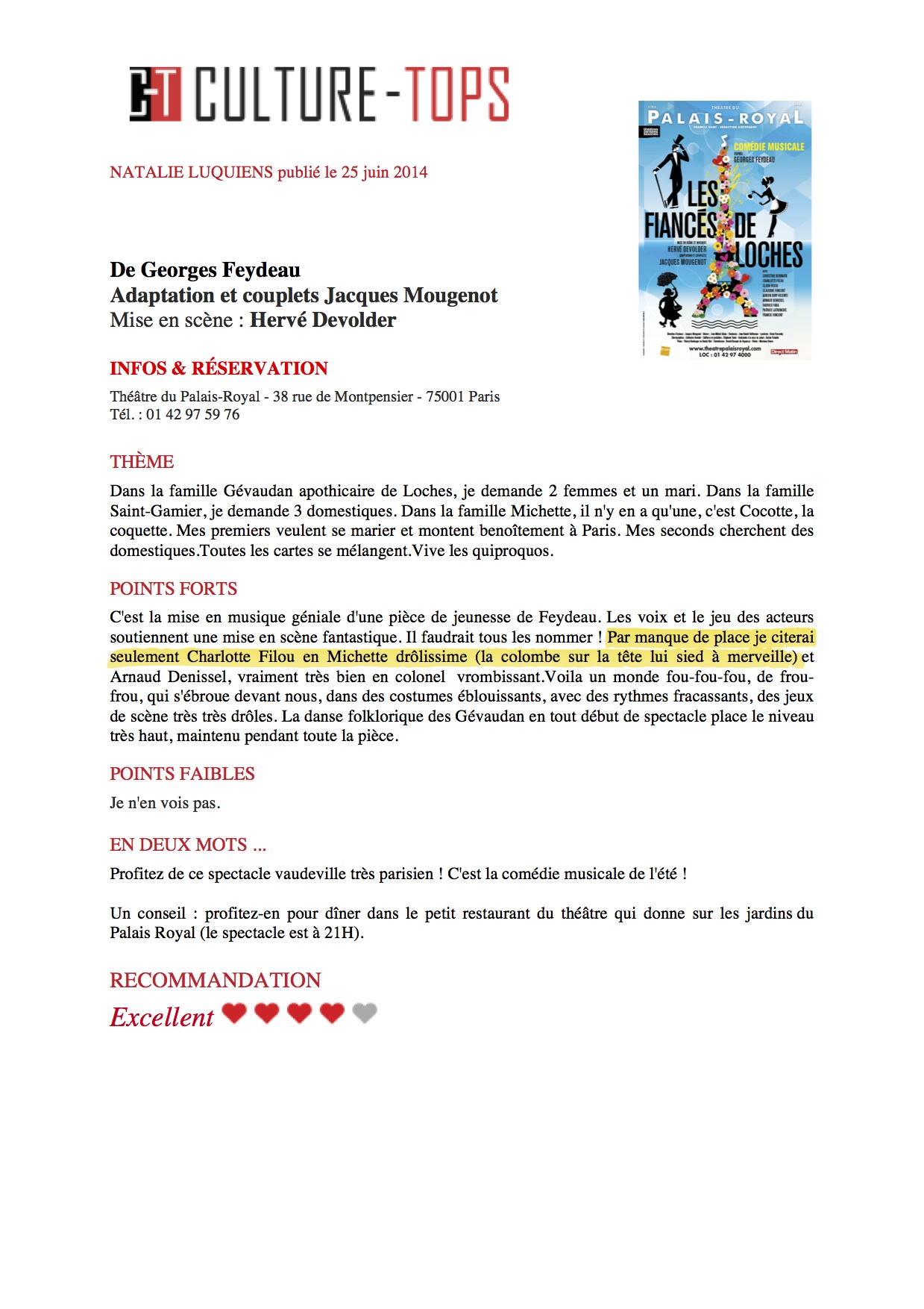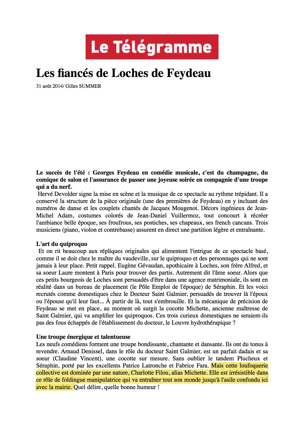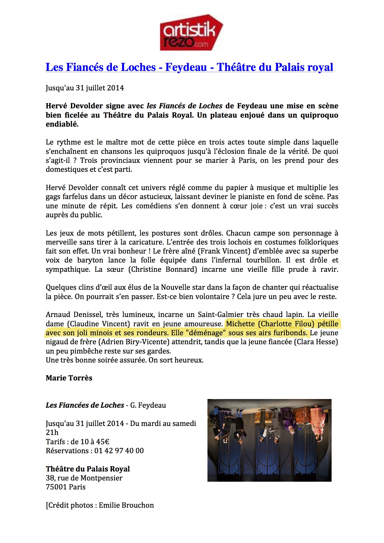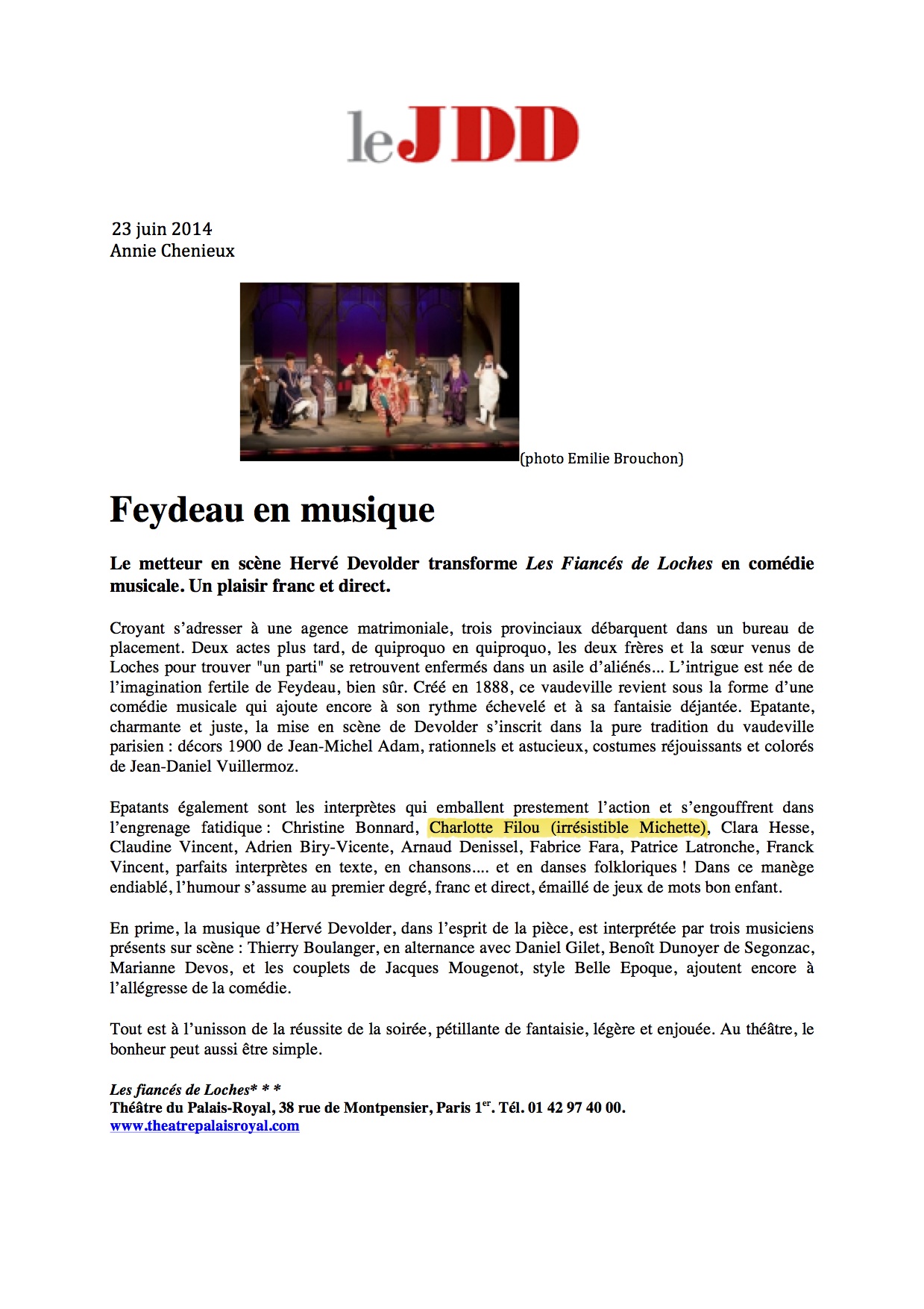 Mention spéciale à Charlotte Filou, pétulante Michette.