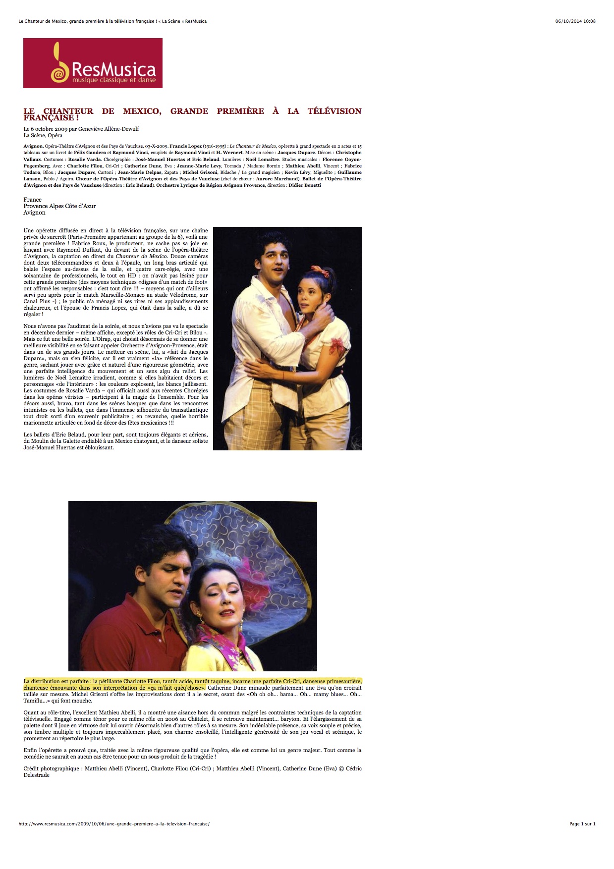 Le Figaro – Armelle Héliot, 2014