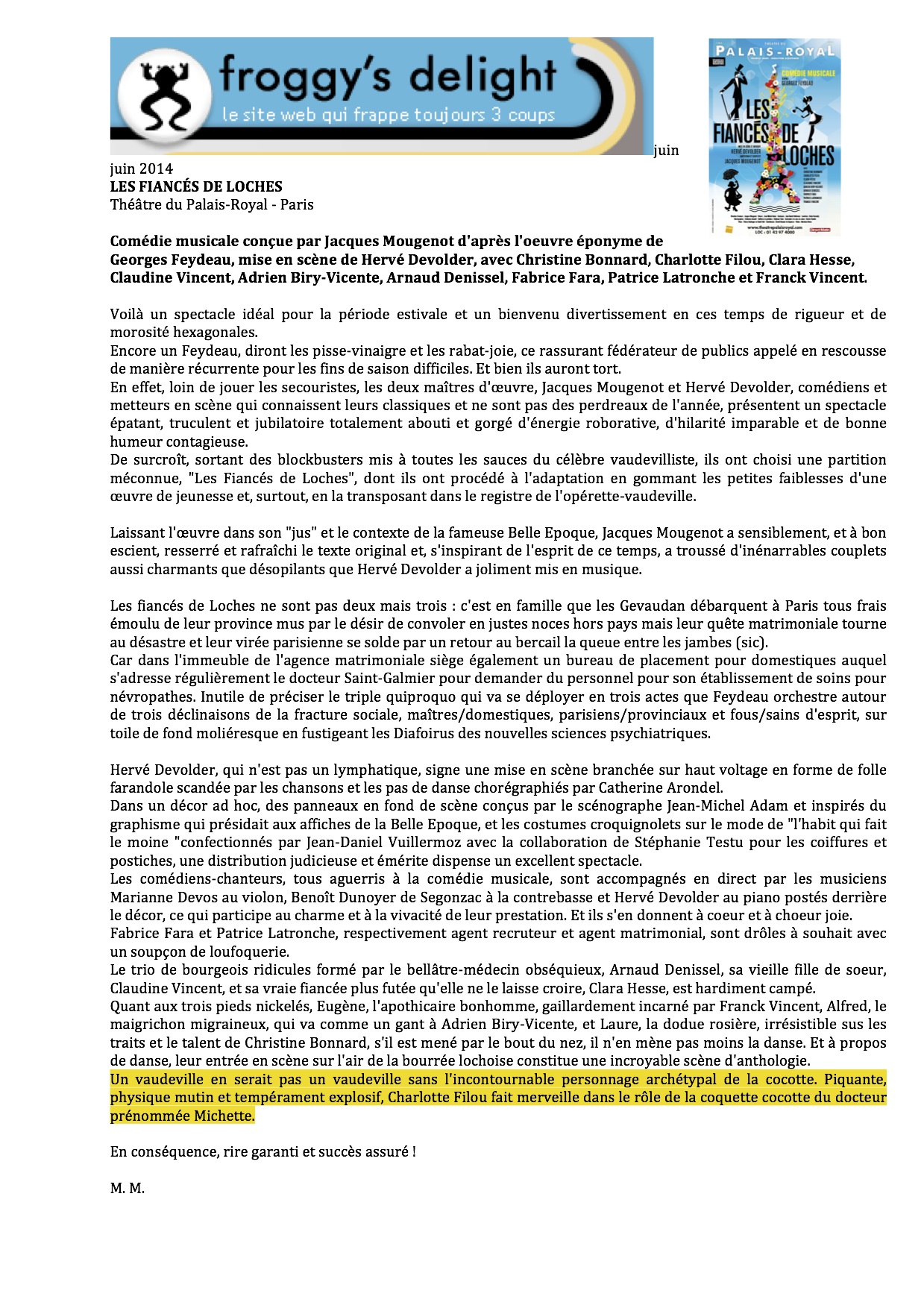 Les interprètes -notamment Christine Bonnard, Charlotte Filou et Arnaud Denissel- déploient une énergie mutine, bien dosée.