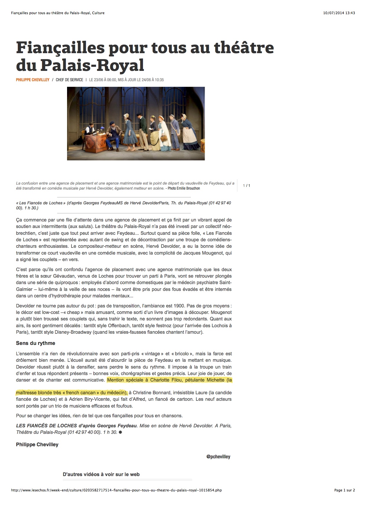 Les Echos – Philippe Chevilley, 2014