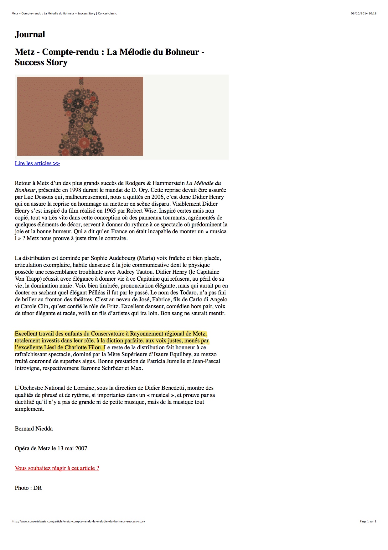 L’image qui me reste est la tendresse dans les yeux de Charlotte Filou, alors que Maurice Aufair sort de scène, M. Schmidt faisant ses adieux à la pièce.
